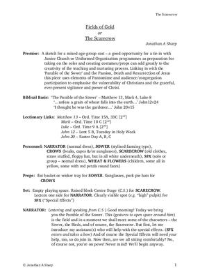 A fun-packed sketch for mixed age-group - get the Junior Church and Uniformed Organisations to join in. Audience participation, too. Themes of sowing and growing, dying and rising again. Good for Harvest, Easter, 'Parable of the Sower'...