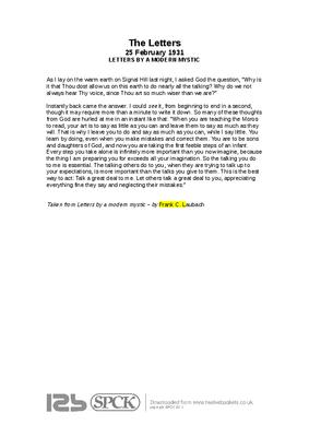 As I lay on the warm earth on Signal Hill last night, I asked God the question, “Why is it that Thou dost allow us on this earth to do nearly all the talking? Why do we not always hear Thy voice, since Thou art so much wiser than we are?”...
