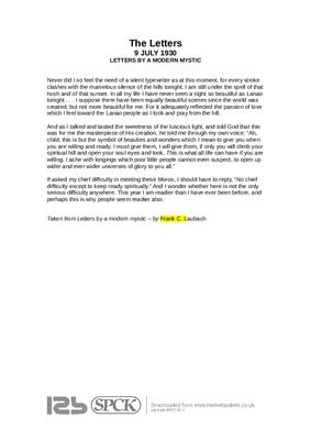 Never did I so feel the need of a silent typewriter as at this moment, for every stroke clashes with the marvelous silence of the hills tonight. I am still under the spell of that hush and of that sunset. In all my life I have never seen a sight so beautiful as Lanao tonight . . . I suppose there have been equally beautiful scenes since the world was created, but not more beautiful for me. For it adequately reflected the passion of love which I feel toward the Lanao people as I look and pray from the hill...