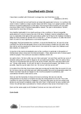 This short reflection/sermon (530 words) explores Paul’s claim to have been crucified with Christ, by considering the events in Gethsemane., and what they meant for Paul and for all Christians.