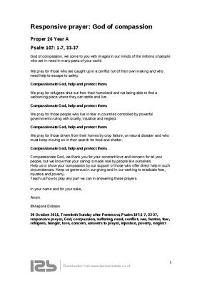 30 October 2011, Twentieth Sunday after Pentecost, Psalm 107:1-7, 33-37, responsive prayer, God, compassion, suffering, need, conflict, war, famine, fear, refugees, hunger, love, concern, answers to prayer, injustice, poverty, neglect