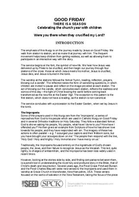 The emphasis of this liturgy is on the journey made by Jesus on Good Friday. We walk from station to station, and so make that journey with him. The frequent movement helps keep children from getting restless, as well as allowing them to participate in an interactive way with the story...