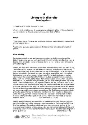 Purpose: to think about how to recognize and release the gifting of disabled people as a contribution to the unity and wholeness of the body of Christ…