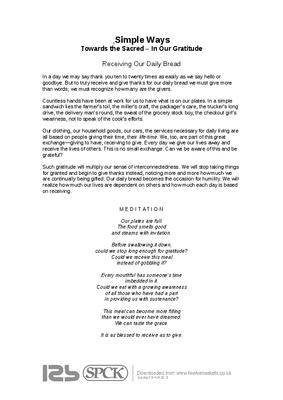 In a day we may say thank you ten to twenty times as easily as we say hello or goodbye. But to truly receive and give thanks for our daily bread we must give more than words; we must recognize how many are the givers.