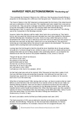 This reflection considers the challenges to the individual following harvest in deciding what offering to make from what has been received. This is done by examining the process of reckoning up in the decision. Both freewill offerings and tithing are considered