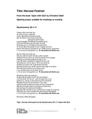 Tags: Harvest, sharing the world, Deuteronomy 26:1-11, Open with God