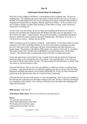 Thoughts taken from TV, Books and life experiences on various topics and given a Christian slant to stimulate thoughts. The topic here for Day 15 is about seeing God as a helper and saviour, and reflecting on some lyrics by U2.