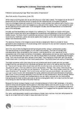 Imagining the Lectionary: Bear fruits worthy of repentance (Advent 3C)