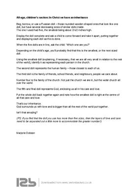 Using the smallest doll (explaining, if necessary, that we are all very small in relation to the rest of the world), identify it as representing each person in the church.