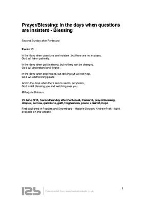 Prayer/Blessing: In the days when questions are insistent - Blessing