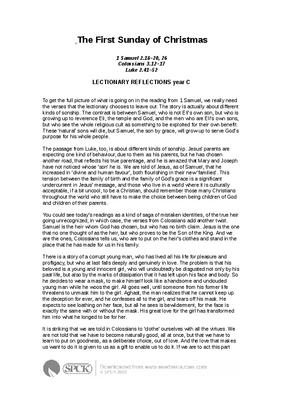 The passage from Luke, too, is about different kinds of sonship. Jesus’ parents are expecting one kind of behaviour, due to them as his parents, but he has chosen another road, that reflects his true parentage, and he is amazed that Mary and Joseph have not noticed whose ‘son’ he is. We are told of Jesus, as of Samuel, that he increased in ‘divine and human favour’, both flourishing in their new ‘families’. This tension between the family of birth and the family of God’s grace is a significant undercurrent in Jesus’ message, and those who live in a world where it is culturally acceptable, if a bit uncool, to be a Christian, should remember those many Christians throughout the world who still have to make the choice between being children of God and children of their parents...