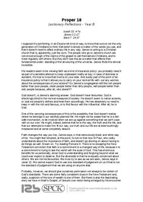 I suppose it’s comforting, in an Eeyore-ish kind of way, to know that ours is not the only generation of Christians to think that belief is simply a matter of the words you use, and that it doesn’t need to affect ordinary life in any way. James is writing to a Christian church that is, apparently, just like ours. The people who go to James’s church are convinced enough of the claims of the gospel to call themselves Christians, and to meet regularly with others. But they don’t see this as a matter that affects their fundamental under- standing of the structuring of the universe. James finds this almost incredible...
