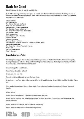 Each of the following sketches (scenes) can be used to form the basis for a complete act of worship or used as individual scenes on separate occasions. Each scene will require a narrator to read the linking text as well as the characters in the scene itself.