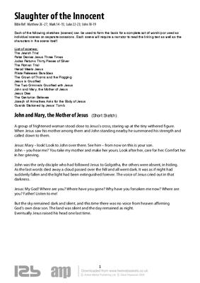 Each of the following sketches (scenes) can be used to form the basis for a complete act of worship or used as individual scenes on separate occasions. Each scene will require a narrator to read the linking text as well as the characters in the scene itself.