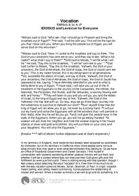 In my seminary in England, most students had already been accepted as candidates for ordination, but in my seminary in California many more people come not sure what ministry they may seek or even what denomination they belong to. So we have an Office of Vocational Discernment and Career Services. I find myself in conversation with students wondering whether pastoral ministry will suit them and whether it will be a context where they can exercise their God-given gifts and find fulfillment (or even just find a job). There is nothing wrong with that question, though I feel uneasy about attaching the word “vocation” to it, if we think it has much to do with the way vocation comes to Moses, Jonah, Jeremiah, or Paul. In origin, vocation meant calling, and calling meant summoning. It presupposes the relationship of master and servant. When a master summons a servant to go and do something, it is not designed to be a way for the servant to find fulfillment, nor something the servant has an option about...