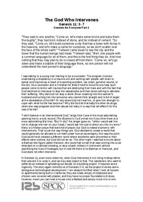 I was talking to a young man training to be a counselor. The program involves undertaking a chaplaincy in a trauma unit and working with people with brain or spinal cord injuries as a result of a sporting accident, car crash, gunshot wound, or the like. As a counselor and a Christian he finds it hard to know how to help such people come to terms with injuries that are destroying their lives and with the fact that God declined to intervene to stop the catastrophe and then does nothing to alleviate their suffering. Why did God not stop a drunk driver crashing into this woman’s husband and turning him into someone who cannot think straight and is full of anger at the devastation of his life? Or why does God not heal him, or give him strength to cope with what his life has become? Why did God let that baby’s mother do drugs when she was pregnant and then abuse her baby in a way that will affect it for the rest of its life?...