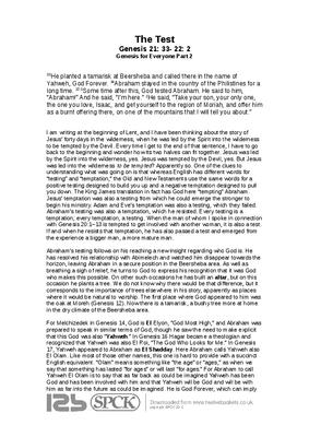 I am writing at the beginning of Lent, and I have been thinking about the story of Jesus’ forty days in the wilderness, when he was led by the Spirit into the wilderness to be tempted by the Devil. Every time I get to the end of that sentence, I have to go back to the beginning and wonder how its two halves can fit together. Jesus was led by the Spirit into the wilderness, yes. Jesus was tempted by the Devil, yes. But Jesus was led into the wilderness to be tempted? Apparently so. One of the clues to understanding what was going on is that whereas English has different words for “testing” and “temptation,” the Old and New Testaments use the same words for a positive testing designed to build you up and a negative temptation designed to pull you down. The King James translation in fact has God here “tempting” Abraham. Jesus’ temptation was also a testing from which he could emerge the stronger to begin his ministry. Adam and Eve’s temptation was also a testing, which they failed. Abraham’s testing was also a temptation, which he resisted. Every testing is a temptation; every temptation, a testing. When the man of whom I spoke in connection with Genesis 20:1–13 is tempted to get involved with another woman, it is also a test. If and when he resists that temptation, he has also passed a test and emerged from the experience a bigger man, a more mature man...