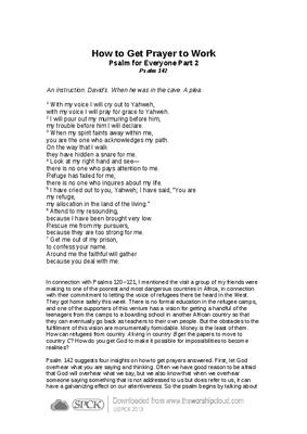 In connection with Psalms 120–121, I mentioned the visit a group of my friends were making to one of the poorest and most dangerous countries in Africa, in connection with their commitment to letting the voice of refugees there be heard in the West. They got home safely this week. There is no formal education in the refugee camps, and one of the supporters of this venture has a vision for getting a handful of the teenagers from the camps to a boarding school in another African country so that they can eventually go back as teachers to their own people. But the obstacles to the fulfillment of this vision are monumentally formidable. Money is the least of them. How can refugees from country A living in country B get the papers to move to country C? How do you get God to make it possible for impossibilities to become realities?...