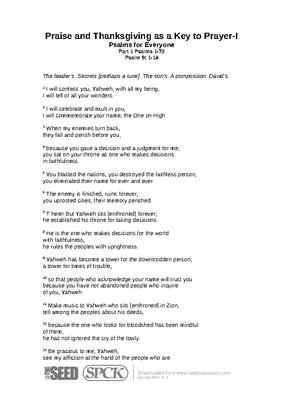 Praise and Thanksgiving as a Key to Prayer-I