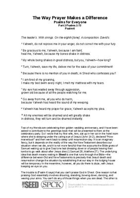 Two of my friends are celebrating their golden wedding anniversary, and I have been asked to contribute to the greetings book that will be presented to them at the celebratory party. So I wrote that my first wife, Ann, sat up in her cot in the hotel room where she is sleeping under the caring eye of Jesus (John 14:2), declared “How marvelous!” and then went back to sleep until resurrection day. It is an imaginary fancy, but it depends on the reality of the way the New Testament describes our situation when we die, and it is not more fanciful than the accounts the Bible gives of Samuel waking up to give Saul one last dressing down or of people leaving their tombs to go walk about after Jesus dies (1 Samuel 28; Matthew 27). The underlying idea that death means resting in Sheol is one that runs through the Bible—the difference between Old and New Testaments is precisely that Jesus’ death and resurrection change the situation by establishing that our stay in the lodging house will be temporary. In the meantime, however, all you do there is doze, with Jesus keeping an eye on you...