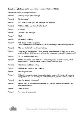 Joseph accepts Jesus as his son (dialogue based on Matthew 1:18-25)