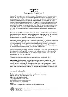 Gaze on the sort of journeys we make today, on all the preparation and paraphernalia we acquire. We need tickets and passports, hotel reservations, luggage and currency. We surround ourselves with so much security, and so much comfort, and find it hard to travel light. How we moan about the restrictions on the weight of our luggage on the plane! Gaze on Jesus and his disciples: reliant on the hospitality of strangers, sleeping out in the open if necessary, determined not to rely on anything that will handicap their swiftness and entice them to stay any longer than they need. They do not relax by the pool, or linger over a three-course lunch. They are always concerned to travel on, looking ahead to the next stop, for their message is urgent and there are always more people ahead who need to hear it...