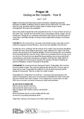 Taken from Gazing on the Gospels Year B By Judith Dimond