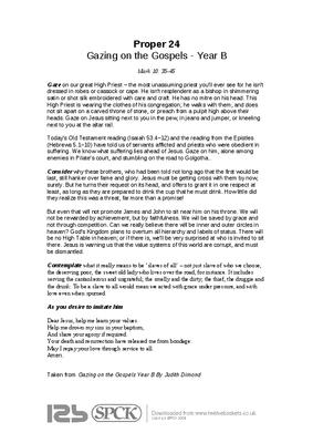Taken from Gazing on the Gospels Year B By Judith Dimond