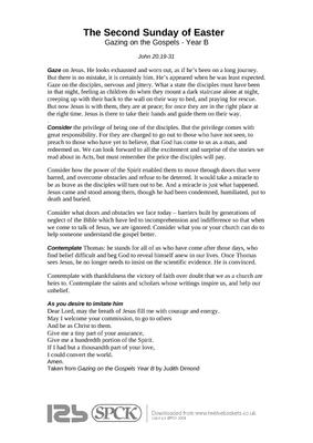 Taken from Gazing on the Gospels Year B by Judith Dimond