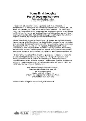 I would much rather not have had to experience such frequent episodes of depression over so many years and I still have questions I want to, and do, ask God about. But I’ve learnt that I have a choice about how I view this. I can continue to regret that it took so long for me to reach a place where depression no longer shapes my life. Or I can be thankful and glad that I have reached that place and am finding an enjoyment and delight in life that I had not thought possible. I pray that with God’s help I will continue, day by day, to choose the latter approach...