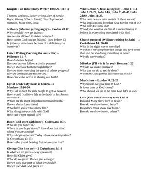 A Bible Study series based around themes from the film Knight's Tale. It includes a series of questions linked to a variety of verses aimed to provoke discussion and thought about a wide range of themes. This is the seventh part and runs from when Adamar gets angry until William is told he doesn't love Roslyn.