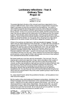 audience’s sympathy begins to shift. All that work, and it turns out just to be a financial investment, they mutter. I wouldn’t mind having so many vineyards that I could afford to let them out, they joke. Jesus’ audience may not have been uniformly poverty-stricken, but the majority of them were probably more likely to have suffered from unpleasant landlords than unreliable tenants...