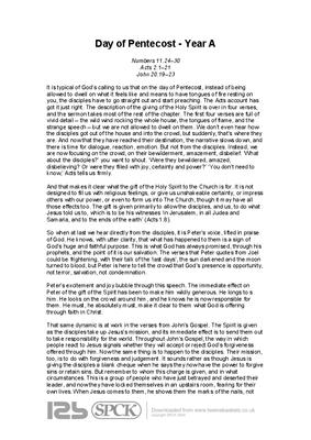 It is typical of God’s calling to us that on the day of Pentecost, instead of being allowed to dwell on what it feels like and means to have tongues of fire resting on you, the disciples have to go straight out and start preaching. The Acts account has got it just right. The description of the giving of the Holy Spirit is over in four verses, and the sermon takes most of the rest of the chapter. The first four verses are full of vivid detail – the wild wind rocking the whole house, the tongues of flame, and the strange speech...