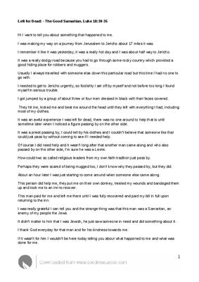 Left for Dead:- The Good Samaritan. Luke 10:30-35