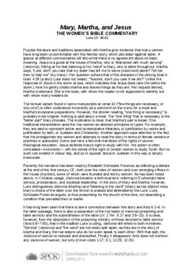 Popular literature and traditions associated with Martha give evidence that many women have long been uncomfortable with this familiar story, which pits sister against sister…