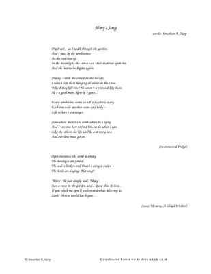 May be sung to the tune "Memory" (Andew Lloyd Webber) or spoken.