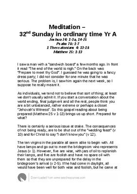 I saw a man with a “sandwich board” a few months ago. In front it read “The end of the world is nigh.” On the back was “Prepare to meet thy God”. I guessed he was going to a fancy dress party; I did not consider for one minute that he was serious. The problem is, I saw him again the next week, so I suppose he really meant it...