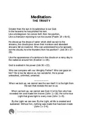 Greater than the sun in its splendour is our God. In the heavens he has pitched his tent. Like a bridegroom he comes forth from his pavilion, Like a champion rejoicing to run his course (Psalm 19 v 4b-6). He draws up the drops of water which distil as rain to the streams, the clouds pour down their moisture and abundant showers fall on mankind. Who can understand how he spreads out the clouds, how he thunders from his pavilion? (Job 36 v 27-29). Like the appearance of a rainbow in the clouds on a rainy day is the radiance around him (Ezekiel 1 v 28). God is exalted in his power (Job 36 v 22). Who can compare with our Almighty Father? Who can gaze on him? He is too far above us, too wonderful. He is power unleashed, unlimited, untamed...