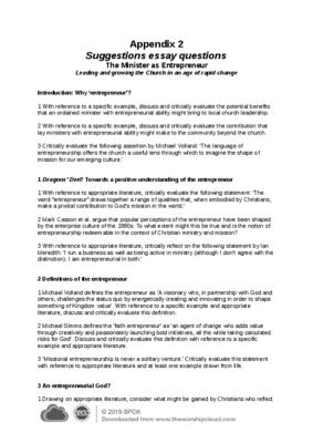 1 With reference to a specific example, discuss and critically evaluate the potential benefits that an ordained minister with entrepreneurial ability might bring to local church leadership…
