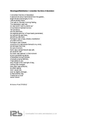 Monologue/Medidtation: I remember that time of desolation
