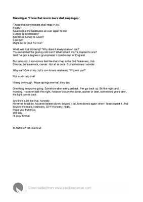 Monologue: ‘Those that sow in tears shall reap in joy.’