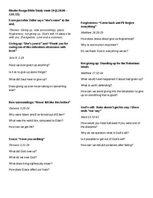 A Bible Study which relies heavily on discussion rather than leading. Using the film 'Moulin Rouge' as a starting point and then looking at a variety of passages (which can be obtained from the web in a variety of different translations) There are questions to help start discussion - some are harder than others.