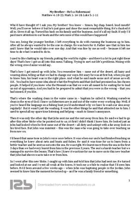 Who’d have thought it I ask you. My brother! You know – Simon, big chap, beard, loud mouth Well, you’ll never believe it but he’s just gone and done the most remarkable thing. He’s chucked it all in. Given it all up. Turned his back on his family and the business. And it’s all my fault. If only I’d paid more attention to our boats and the nets none of this would have happened! You see, being the younger brother, I left everything to do with running the business up to him. After all he always wanted to be the one in charge. He was born for it. Father saw that in him too and I knew that he would take over one day. And that was fine by me as well – because it left me