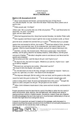 Taken from Lent for Everyone Mark Year B by Tom Wright