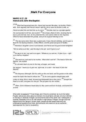 Put this package together, locate it in first-century Galilee, and you have the story of Herod and John the Baptist. There’s nothing private about this story. It would have been round the palace within minutes, round the neighbourhood by morning, and round all Galilee within a day or two. If it had happened today it would be all over the newspapers. It’s sordid, shabby and shameful – exactly the sort of thing that everybody likes to hear, however much they pretend otherwise...