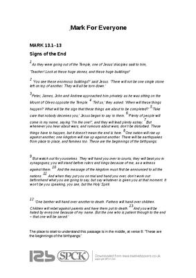 Jesus’ disciples would have known more about birthpangs than most modern men. I watched three of my four children being born, but that’s the limit of my first-hand experience of such matters. In the ordinary world of the ancient Middle East, and many other places to this day, a good deal of intimate family life goes on in a semi-public world. Everyone knows everyone else’s business; children grow up knowing from direct observation what today’s children learn from television; and the way babies are born – and the agonies it takes for a woman to give birth – are part of the common knowledge of everyday life.