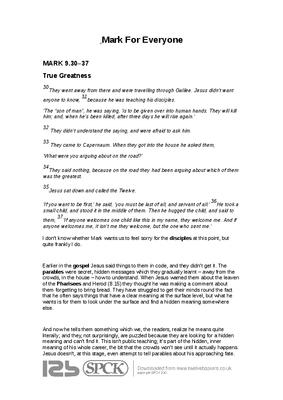 Earlier in the gospel Jesus said things to them in code, and they didn’t get it. The parables were secret, hidden messages which they gradually learnt – away from the crowds, in the house – how to understand. When Jesus warned them about the leaven of the Pharisees and Herod (8.15) they thought he was making a comment about them forgetting to bring bread. They have struggled to get their minds round the fact that he often says things that have a clear meaning at the surface level, but what he wants is for them to look under the surface and find a hidden meaning somewhere else...