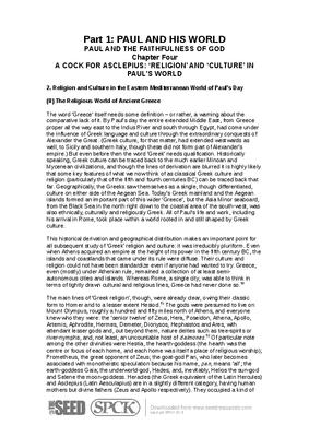 A COCK FOR ASCLEPIUS: ‘RELIGION’ AND ‘CULTURE’ IN PAUL’S WORLD