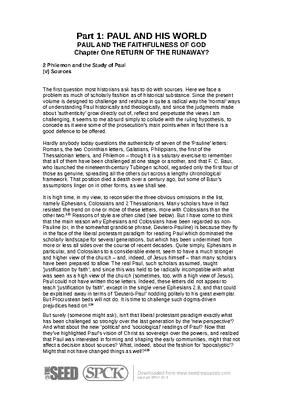 The first question most historians ask has to do with sources. Here we face a problem as much of scholarly fashion as of historical substance. Since the present volume is designed to challenge and reshape in quite a radical way the ‘normal’ ways of understanding Paul historically and theologically, and since the judgments made about ‘authenticity’ grow directly out of, reflect and perpetuate the views I am challenging, it seems to me absurd simply to collude with the ruling hypothesis, to concede as it were some of the prosecution’s main points when in fact there is a good defence to be offered...