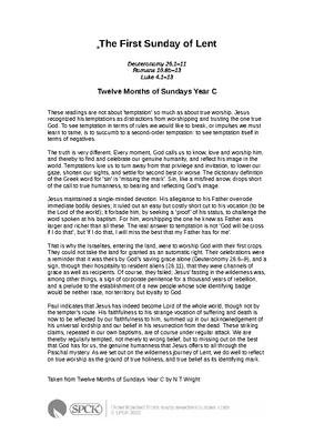 These readings are not about ‘temptation’ so much as about true worship. Jesus recognized his temptations as distractions from worshipping and trusting the one true God. To see temptation in terms of rules we would like to break, or impulses we must learn to tame, is to succumb to a second-order temptation: to see temptation itself in terms of negatives...